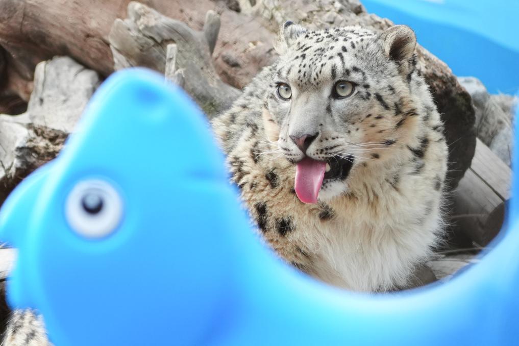 在青海省西宁野生动物园拍摄的雪豹“凌小蜇”。新华社记者 齐芷玥 摄